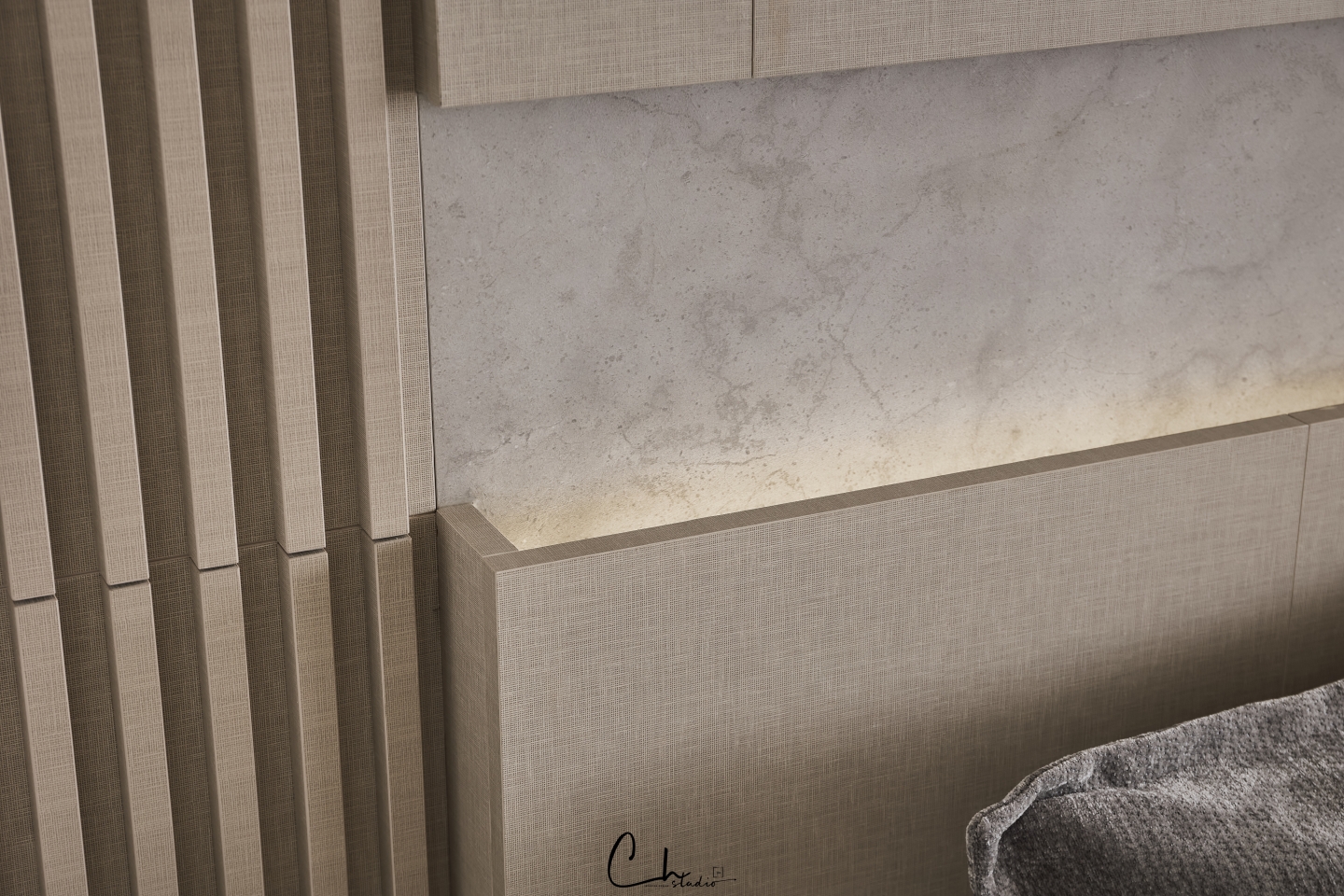 沿著天花板與牆面的光帶設計,不僅提供柔和的基礎照明,更勾勒出重新設計的空間輪廓,營造出宛如精品飯店的細膩質感。